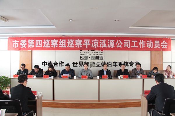 2019-03-312019年3月29日上午,市委第四巡察組巡察平涼泓源公司工作動員會在甘肅泓源麥迪邁智能立體停車有限責任公司3樓會議室召開。市委巡察辦主任趙玖梅、市紀委監(jiān)委派駐市農牧局紀檢監(jiān)察組組長劉剛、市委巡察辦巡察專員趙生寶出席會議并作講話。泓源公司黨委書記、董事